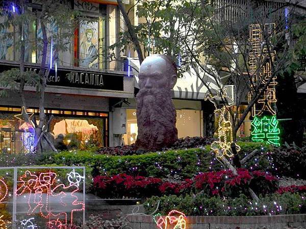 圖說:2012年耶誕節前夕,淡水街頭矗立的馬偕頭像。(攝影╱蔡宏明)